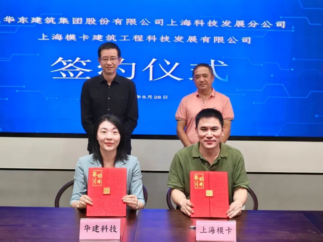 華建集團(tuán)副總工程師、華建科技黨總支書記、總經(jīng)理徐曉明與模卡上海??ńㄖこ炭萍及l(fā)展有限公司董事長(zhǎng)顧金水作為見(jiàn)證嘉賓,華建科技副總經(jīng)理董藝與上海??ńㄖこ炭萍及l(fā)展有限公司總經(jīng)理陳豐華代表雙方簽署協(xié)議。華建科技副總工程師盧旦,華建科技建筑新材料技術(shù)研究所副所長(zhǎng)(主持工作)朱韶華等雙方相關(guān)部門負(fù)責(zé)人共同出席活動(dòng)。
