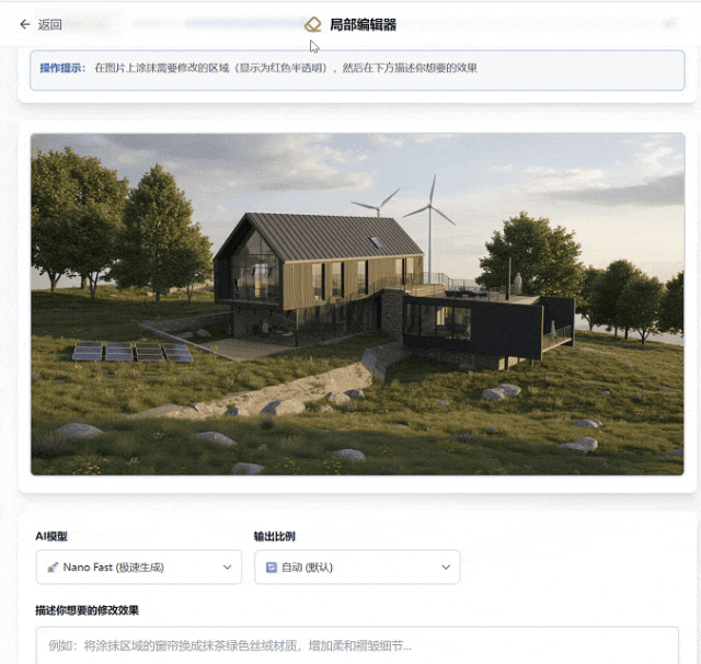 平臺(tái)提供強(qiáng)大的局部編輯功能,設(shè)計(jì)師可對(duì)AI生成的效果圖進(jìn)行精細(xì)化調(diào)整。支持局部區(qū)域重新生成、風(fēng)格微調(diào)、材質(zhì)替換、元素增刪等操作,實(shí)現(xiàn)"指哪改哪"的精準(zhǔn)控制。AI智能與人工創(chuàng)意深度融合,確保最終成果完全符合設(shè)計(jì)意圖,滿足高品質(zhì)交付要求。