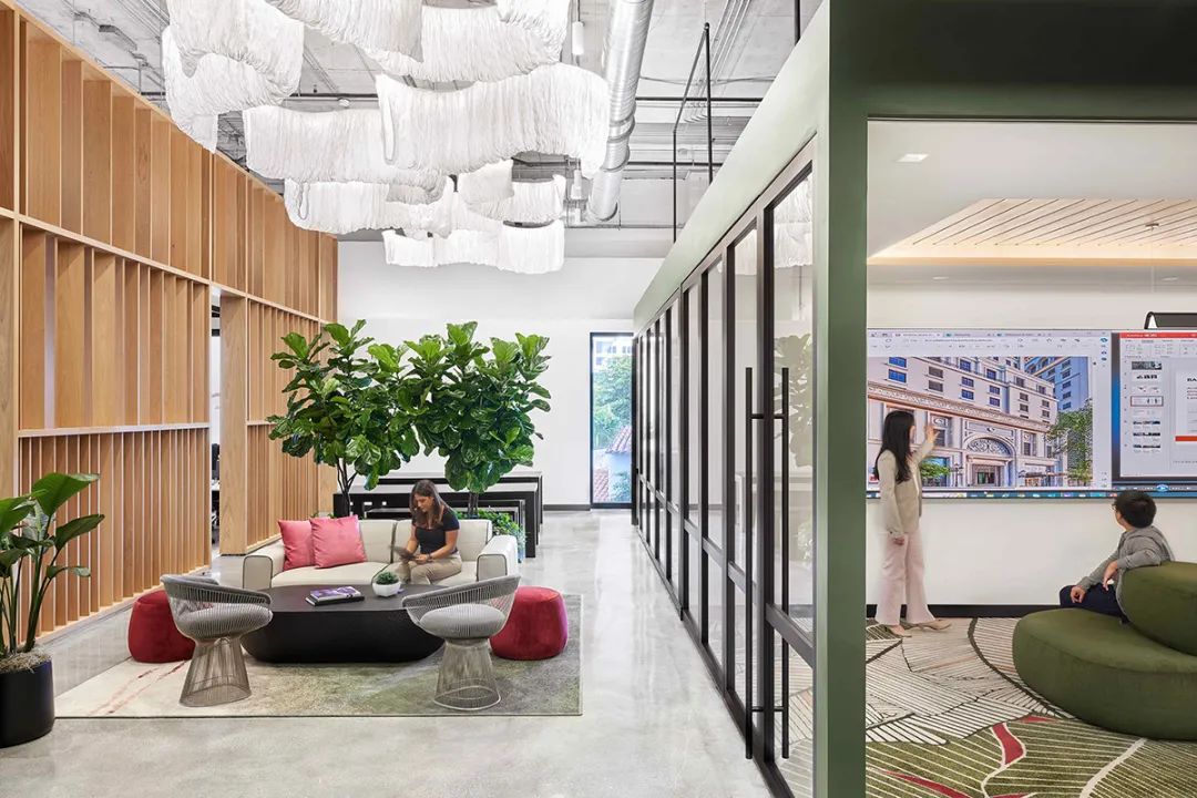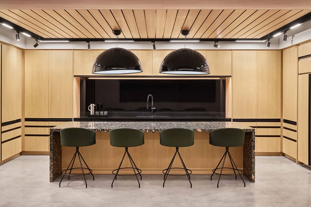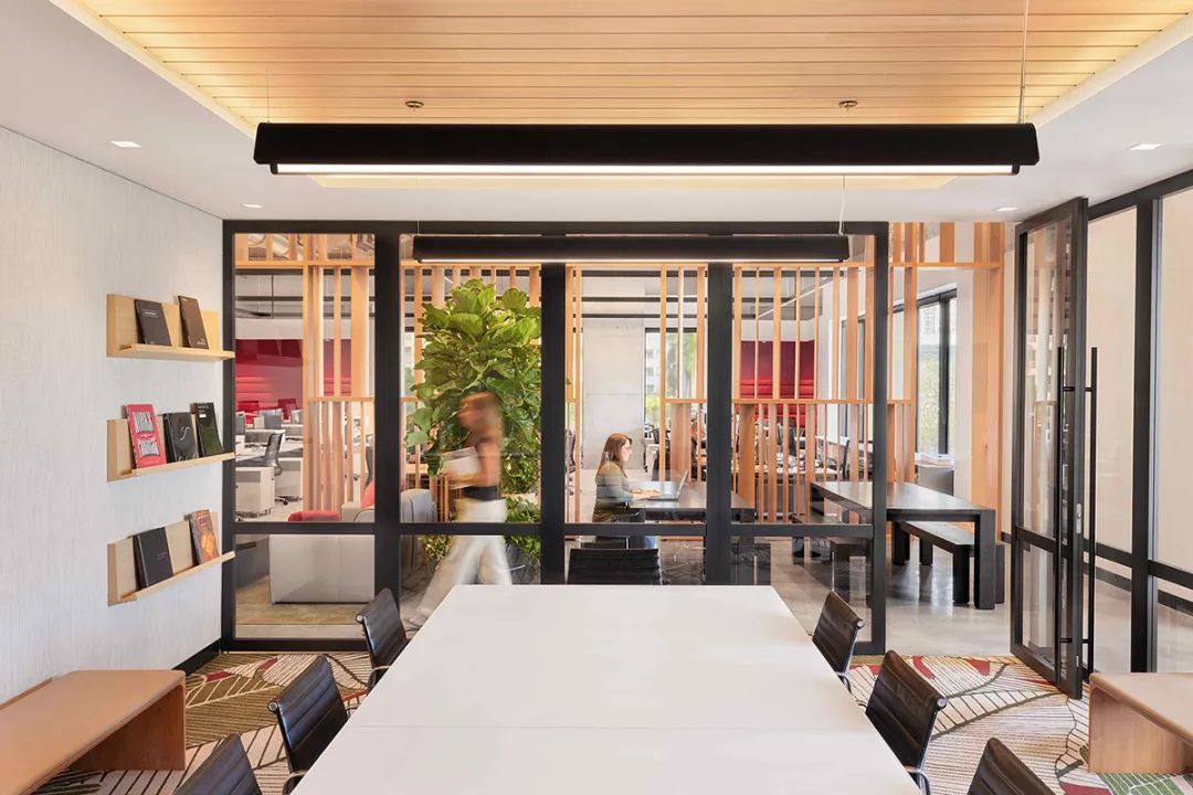 設(shè)計(jì)理念注重協(xié)作、透明和健康,采用靈活開放的布局巧妙突出建筑特色,促進(jìn)團(tuán)隊(duì)協(xié)作和工作效率。會(huì)議室配備先進(jìn)技術(shù)設(shè)施和時(shí)尚玻璃墻,兼顧隱私與功能性。溫馨舒適的茶水間設(shè)有超大型中島臺(tái),為員工提供了理想的社交場(chǎng)地。整體空間功能齊全、靈活多變,提升了工作效率、社交連接和員工福祉。