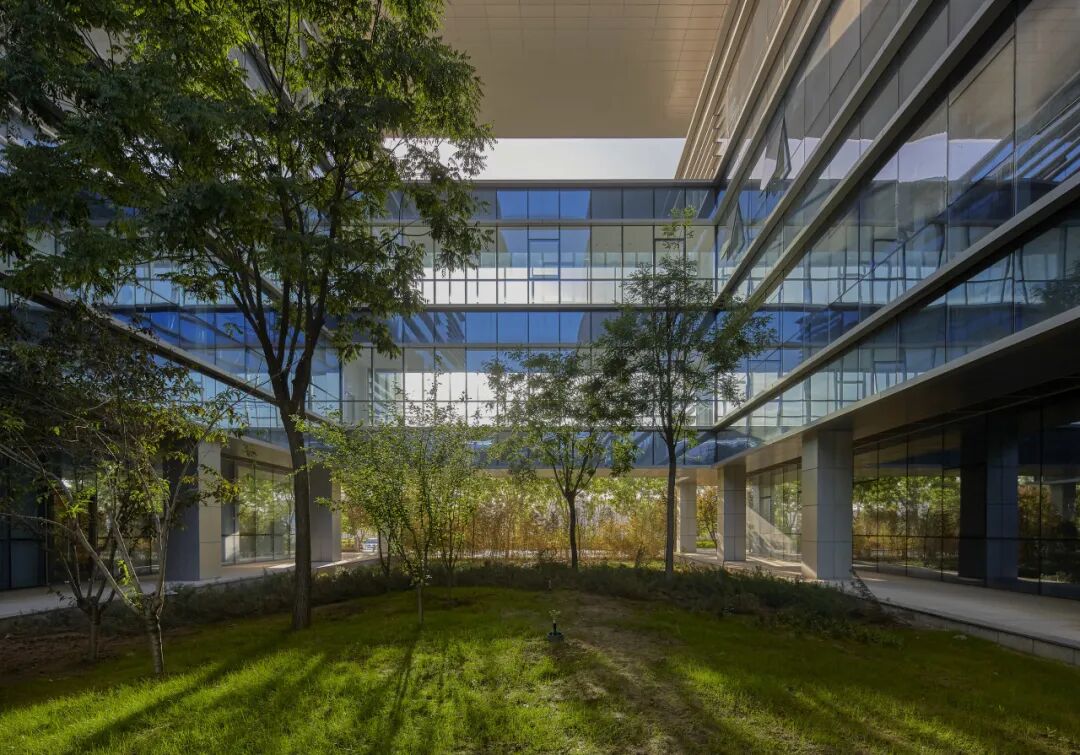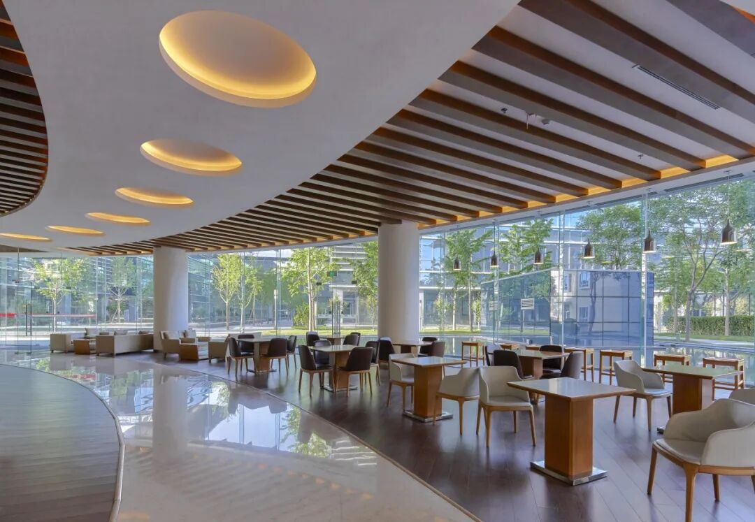 圓形的服務(wù)中心,是規(guī)劃的點(diǎn)睛之筆。游泳健身、圖書(shū)體檢、餐飲咖啡等多功能環(huán)繞圓形光庭展開(kāi),為科學(xué)家提供了精致完善的生活體驗(yàn)。綠色生態(tài)的雙層可呼吸式玻璃幕墻,更為高品質(zhì)的生活體驗(yàn)保駕護(hù)航,力求綠色低碳的高標(biāo)準(zhǔn)設(shè)計(jì)。