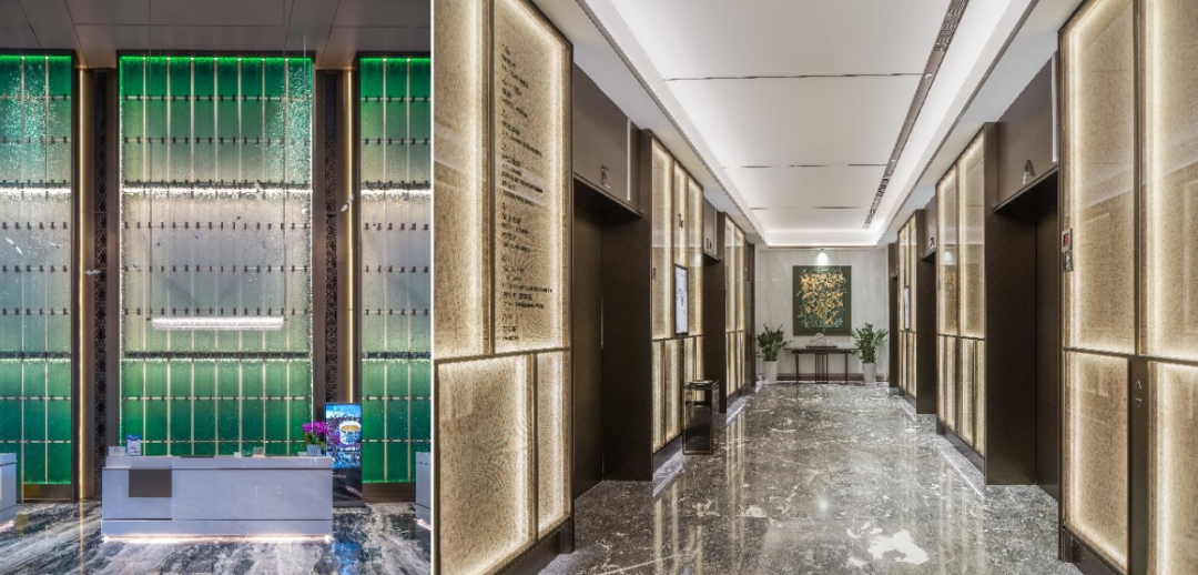 酒店主入口采用架空設(shè)計,結(jié)合鏡面水景營造沉浸式景觀體驗。落客區(qū)通過藝術(shù)屏風(fēng)的巧妙遮蔽,既保障賓客隱私,又塑造出靜謐而富有儀式感的入口空間。