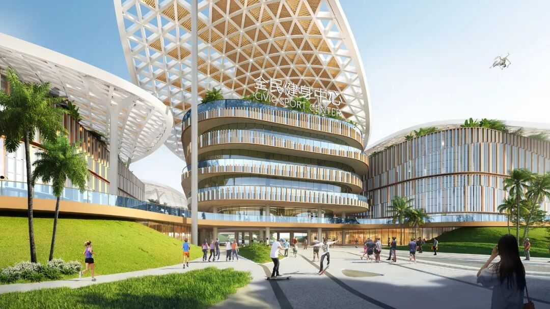 老城科技新城全民健身中心位于澄邁老城科技新城與??谖骱0督粎R的黃金節(jié)點(diǎn),總用地面積約7.1萬平方米,總建筑面積約3.6萬平方米,地上設(shè)有 4000 座體育館、500 座游泳館、多功能城市客廳及體育場(chǎng)輔助用房,地下配套充足空間滿足停車與后勤需求。作為片區(qū)重點(diǎn)“補(bǔ)短板”工程,項(xiàng)目深度契合澄邁"青和老城,創(chuàng)智港城"的城市發(fā)展愿景,將有效填補(bǔ)區(qū)域高水平公共服務(wù)設(shè)施空白,通過“海澄協(xié)同”發(fā)展路徑,與??谖骱0冬F(xiàn)有大型公共設(shè)施形成功能互補(bǔ)與聯(lián)動(dòng),未來將成為激活區(qū)域公共服務(wù)能級(jí)、推動(dòng)城市品質(zhì)提升的重要引擎。