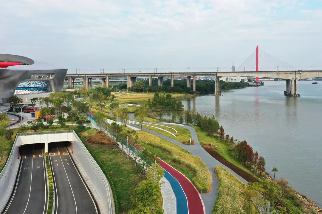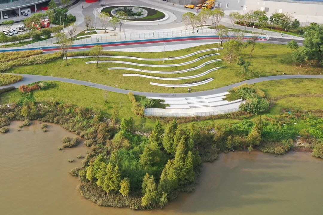 設(shè)計巧妙打破城市與水域的隔閡,通過營造豐富的復(fù)層濱水空間,將德勝河的自然景致引入城市腹地。多元的慢行系統(tǒng)如同一條條紐帶,連通了德勝河生態(tài)通廊,讓這里成為一條匯聚人氣、充滿活力的親水生活帶。