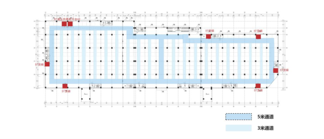 b、垂直交通:垂直交通設(shè)計(jì)構(gòu)建起 “立體運(yùn)輸網(wǎng)絡(luò)”。項(xiàng)目設(shè)置了6組載重5噸的垂直貨梯、2組8T的液壓升降平臺(tái)、以及每層預(yù)留3個(gè)設(shè)備吊裝口,將各樓層生產(chǎn)單元緊密連接,實(shí)現(xiàn)設(shè)備、物料的垂直轉(zhuǎn)運(yùn),確保各樓層生產(chǎn)環(huán)節(jié)的順暢銜接。