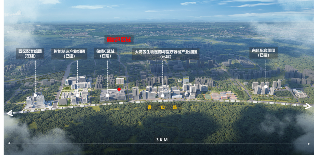 項(xiàng)目所在的高新區(qū)金鼎片區(qū),上位規(guī)劃以“產(chǎn)業(yè)新社區(qū)”為核心理念,通過探索構(gòu)建城市社區(qū)新形態(tài)的路徑,打造產(chǎn)城融合示范區(qū),作為首個(gè)呈現(xiàn)的產(chǎn)業(yè)新社區(qū),在香山路近3km的范圍內(nèi),集中布局了智能制造、新能源以及生物醫(yī)藥三大產(chǎn)業(yè)組團(tuán),以高品質(zhì)產(chǎn)業(yè)建筑重塑片區(qū)門戶形象。