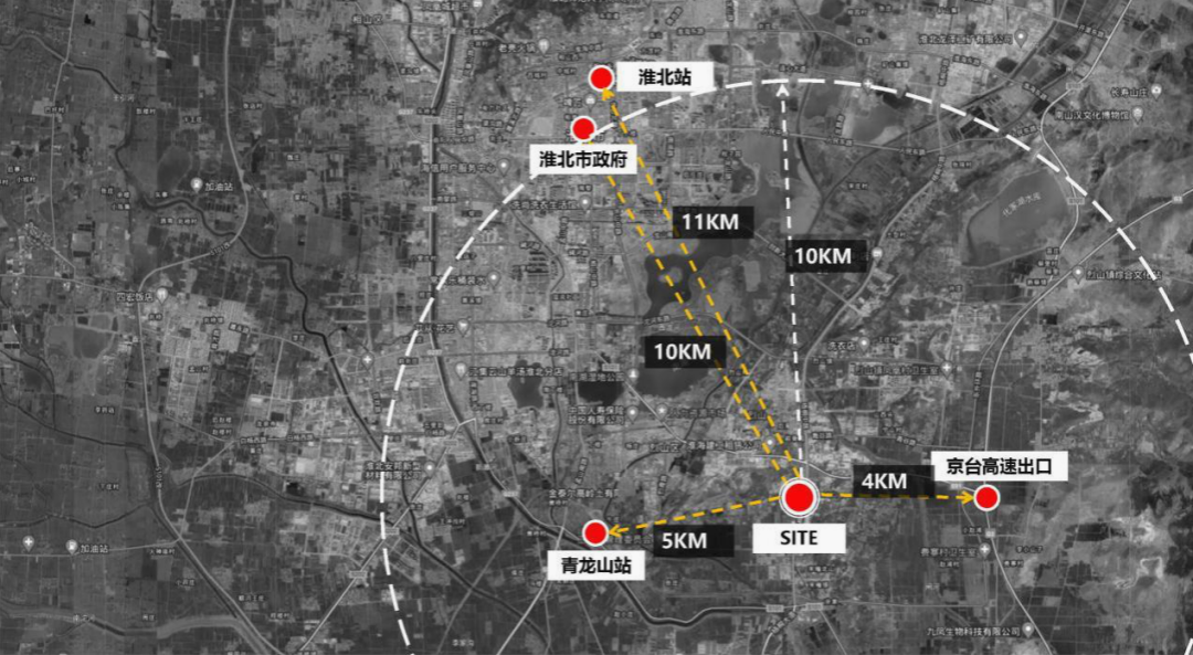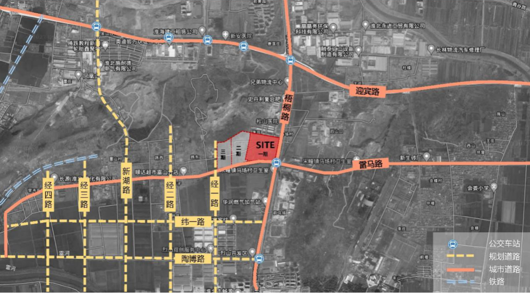 項目位于淮北市烈山區(qū),梧桐路與雷馬路交口西北側。園區(qū)與城市核心地相距不遠,距離京臺高速出口約4km,青龍山站約5km,可達性高,交通便利,區(qū)位條件優(yōu)越。