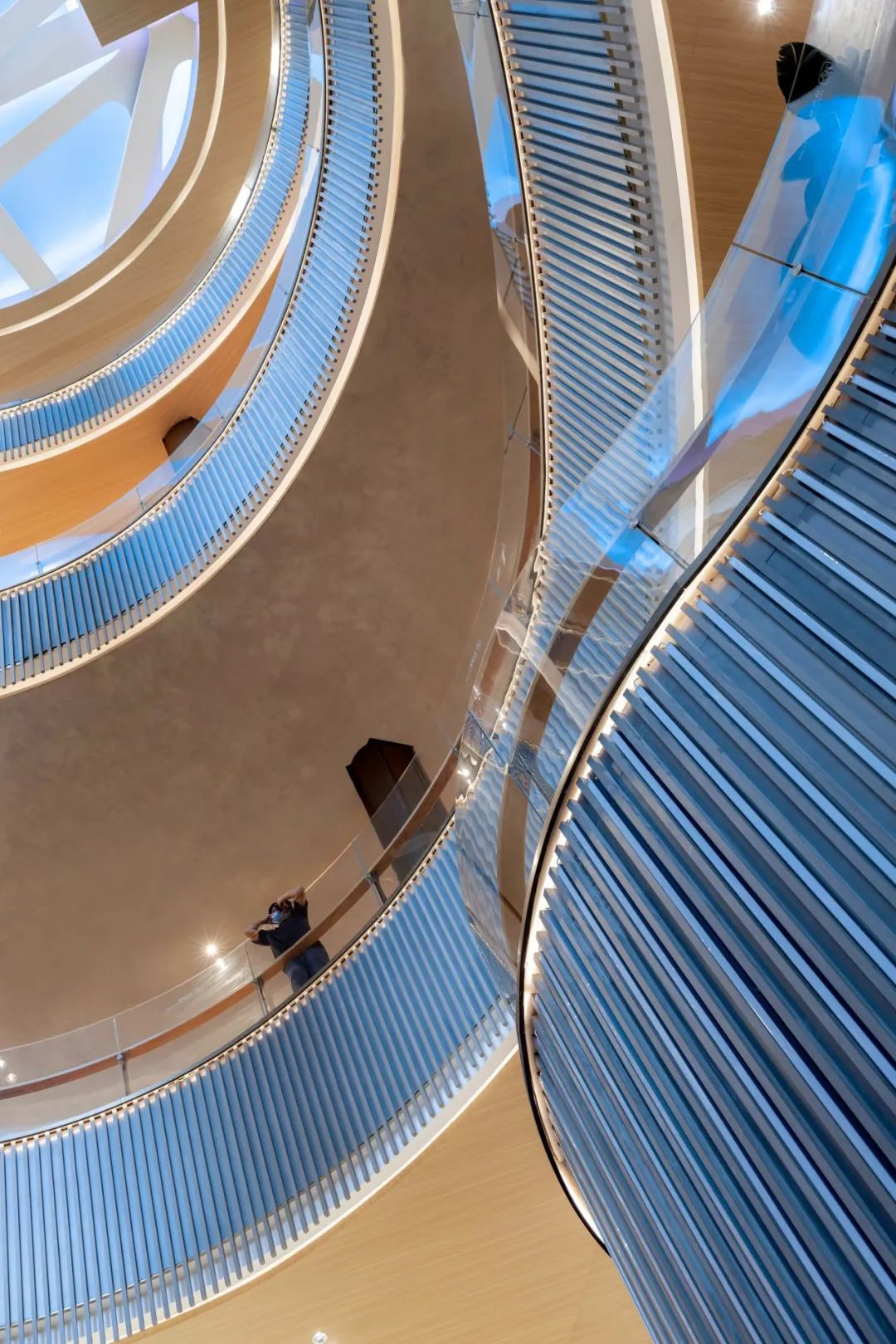在人們進(jìn)入商場(chǎng)前,空中連橋便吸引他們駐足并期待探索高樓層的奧妙,以垂直引流之力,成為令人心馳神往的現(xiàn)象級(jí)勝地。如此一來(lái),這座空中連橋不僅是頂層動(dòng)線不可或缺的組成部分,更是地標(biāo)所在,成功帶來(lái)了可觀的客流拉動(dòng)效應(yīng)。設(shè)計(jì)團(tuán)隊(duì)將線性元素與海景相融合,實(shí)現(xiàn)建筑之美與海洋的和諧共振,展現(xiàn)出濱海藝術(shù)景觀的魅力。