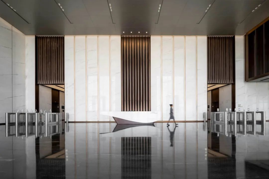 在華彩??跒硰V場(chǎng)項(xiàng)目中,寫字樓公區(qū)的室內(nèi)設(shè)計(jì)也展現(xiàn)著別樣的氣息,設(shè)計(jì)團(tuán)隊(duì)以“生長(zhǎng)、交融和共享”為設(shè)計(jì)理念,將文化、工作和娛樂(lè)融為一體,為用戶打造豐富多樣的體驗(yàn)空間。