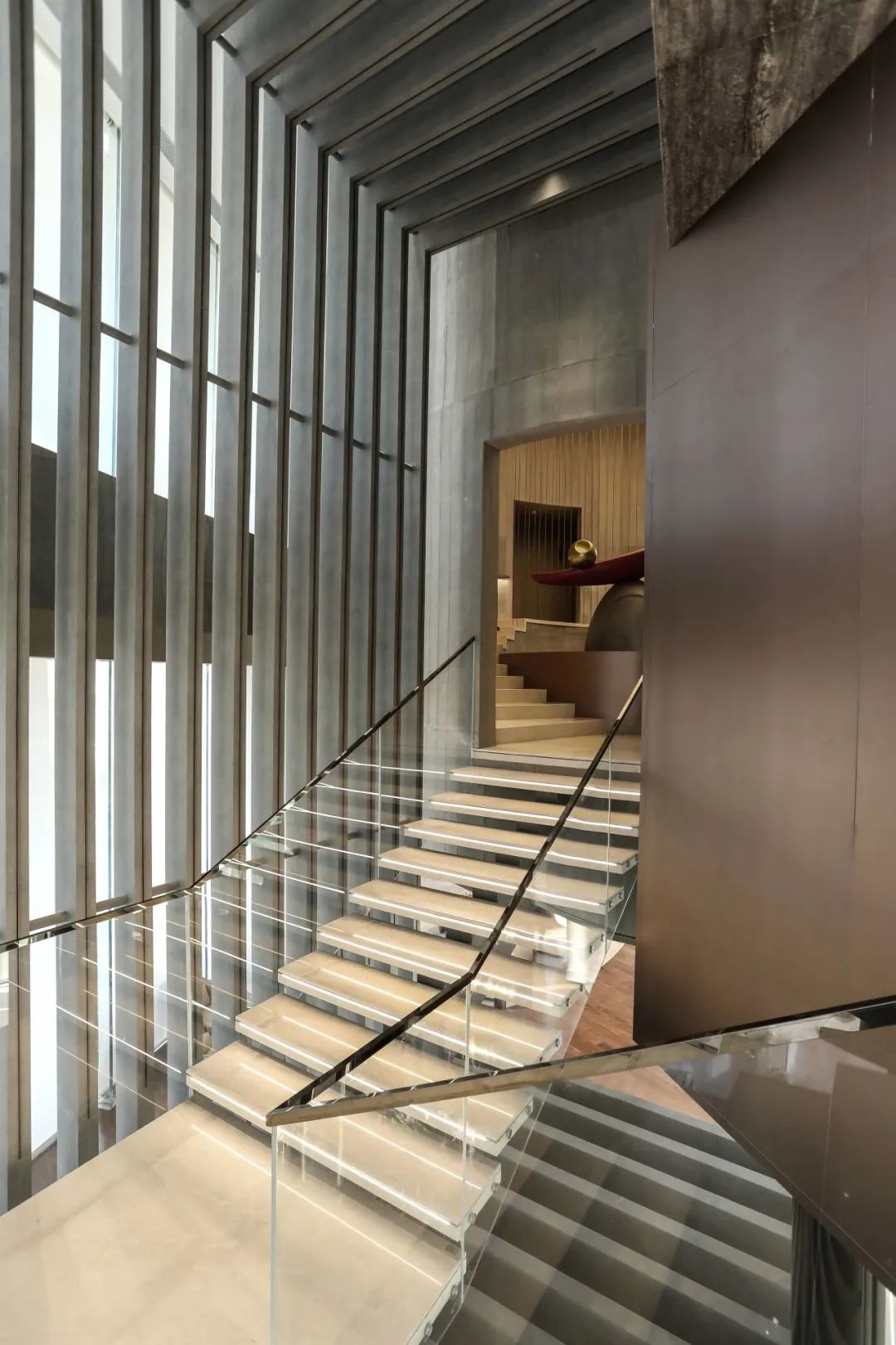 營(yíng)銷中心的室內(nèi)設(shè)計(jì)通過(guò)化繁為簡(jiǎn),消除贅余的表達(dá)為設(shè)計(jì)線索,專注光影關(guān)系的營(yíng)造,以及材質(zhì)肌理本身質(zhì)樸美感的呈現(xiàn)。在滿足銷售中心辦公、招商和銷售等功能需求的基礎(chǔ)上,設(shè)計(jì)團(tuán)隊(duì)打破空間固有的桎梏,通過(guò)體塊穿插及結(jié)構(gòu)懸挑等設(shè)計(jì)介入,創(chuàng)造出錯(cuò)落有致,富有層次的極致感受。